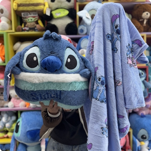 پتو بالشتی عروسک مدل استیچ عروسک به دست ارتفاع 40 سانتی متر به همراه پتو