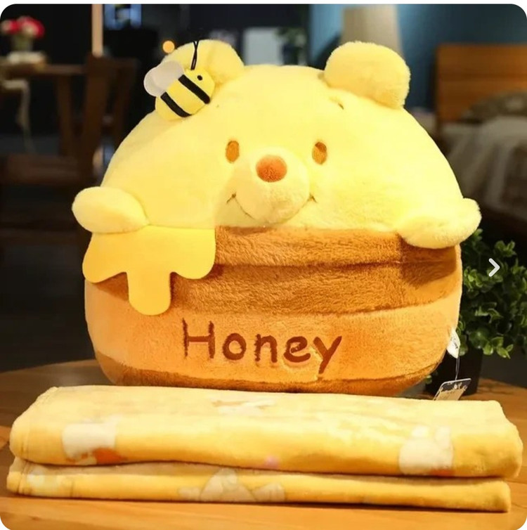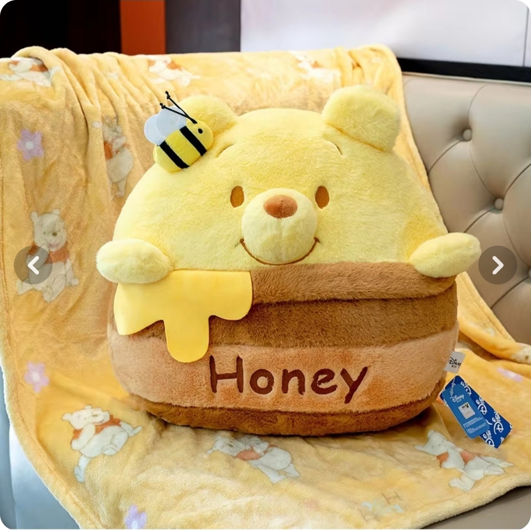 عروسک بالشتی خرس پو مدل JI110 ارتفاع ۴۵ سانتیمتر به همراه پتو