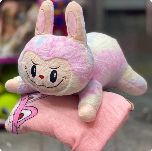 پتو بالشتی لبوبو صورتی پتو چاپدار